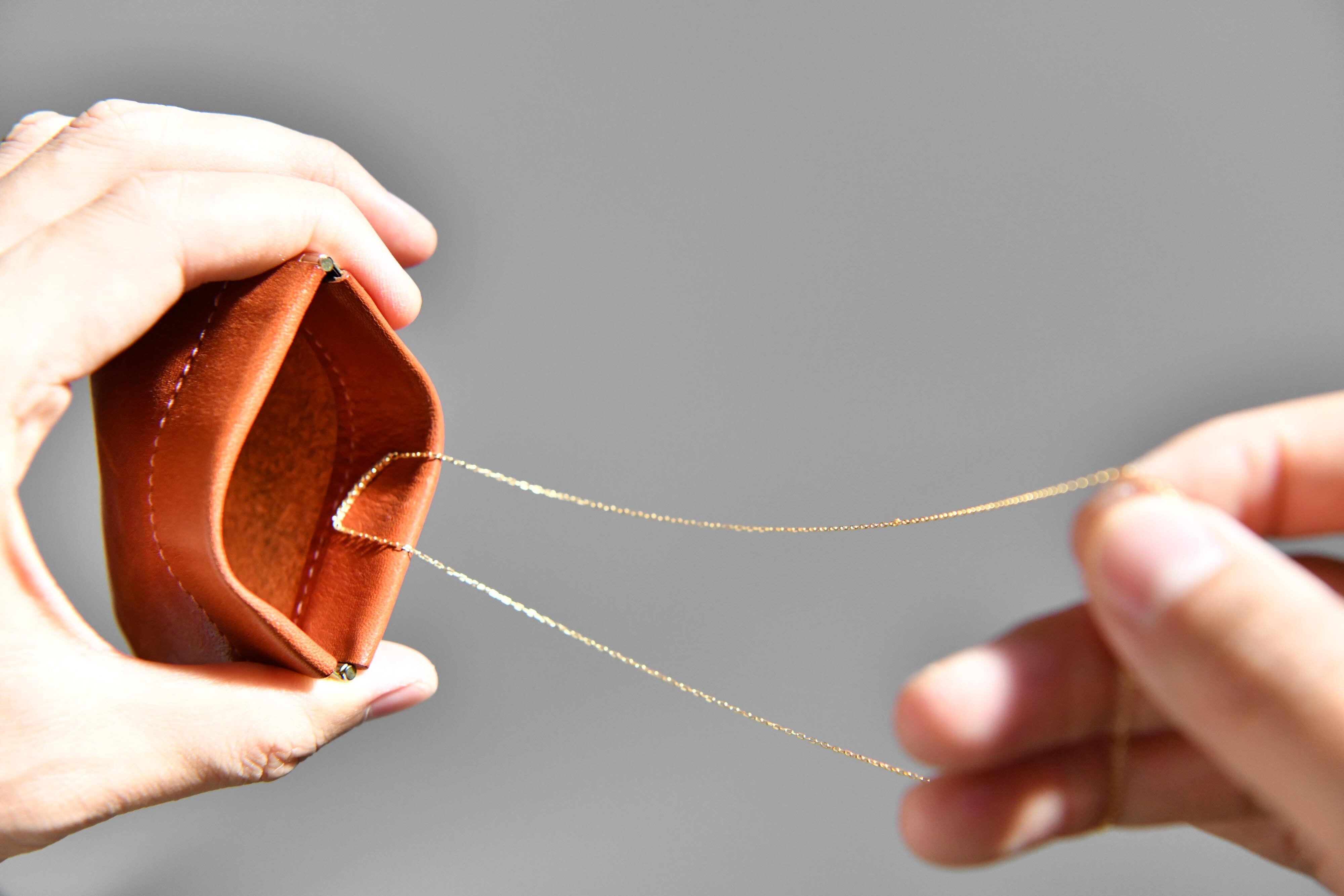 カラーごとに異なる革を採用しており、それぞれ独自の風合いや経年変化を楽しめます。持つほどに味わいが増し、世界にひとつだけのコインケースへと育っていきます。